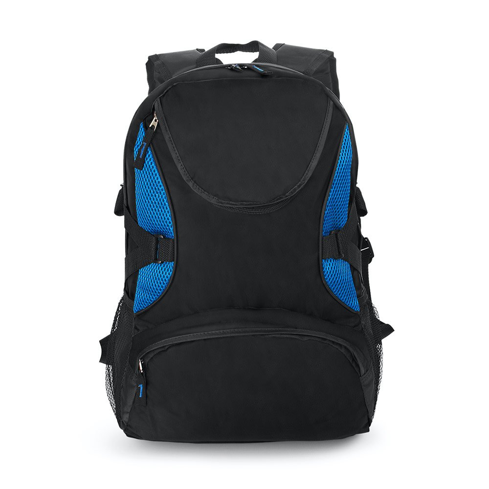 Morral con cargaderas ajustables, bolsillo principal, medio y frontal con cremallera. Bolsillos laterales en malla.