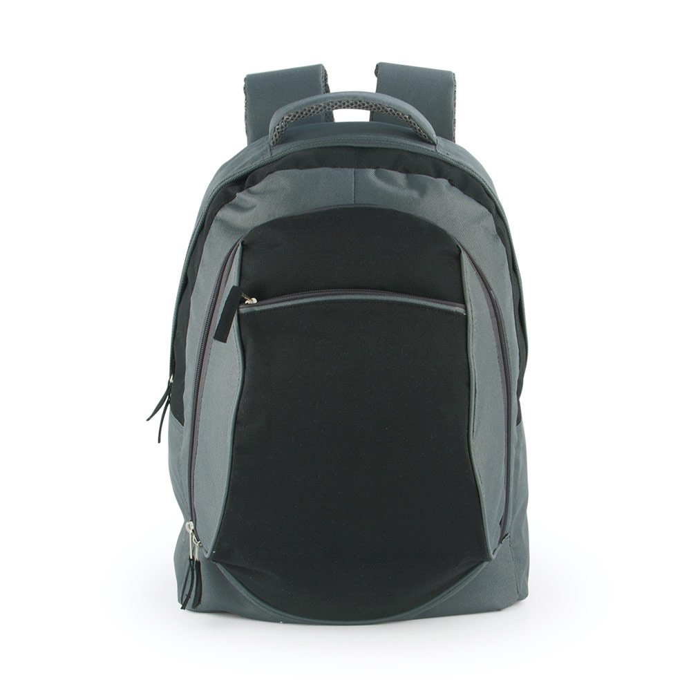 Morral con cargaderas ajustables. Bolsillo medio con compartimiento para documentos y bolígrafos, bolsillo frontal con cremallera.