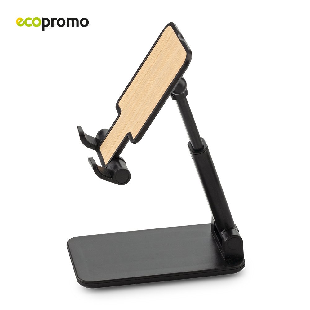Soporte plástico plegable y escualizable con partes en bambú, base y puntas antideslizantes. Empaque caja individual.